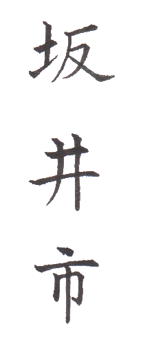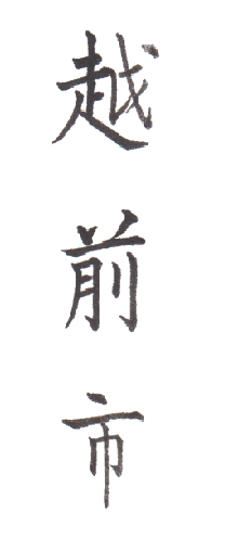 今日は福井県の越前市と坂井市です。都道府県と同様、楷書と行書で書きました。